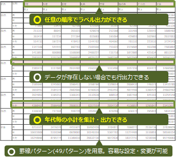 小計機能、任意順序のラベル出力に標準対応。(Excel出力)